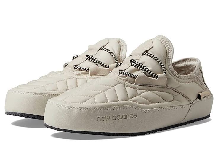 Step into cozy innovation with the New Balance slip-on sneakers. Crafted with a quilted upper and minimalist silhouette, these shoes offer both urban style and indoor comfort. The padded construction ensures warmth and softness, while the easy slip-on design allows for quick wear. Featuring signature New Balance branding and a Vibram outsole for durability and traction, these sneakers are perfect for relaxed daily wear or stylish lounging.
